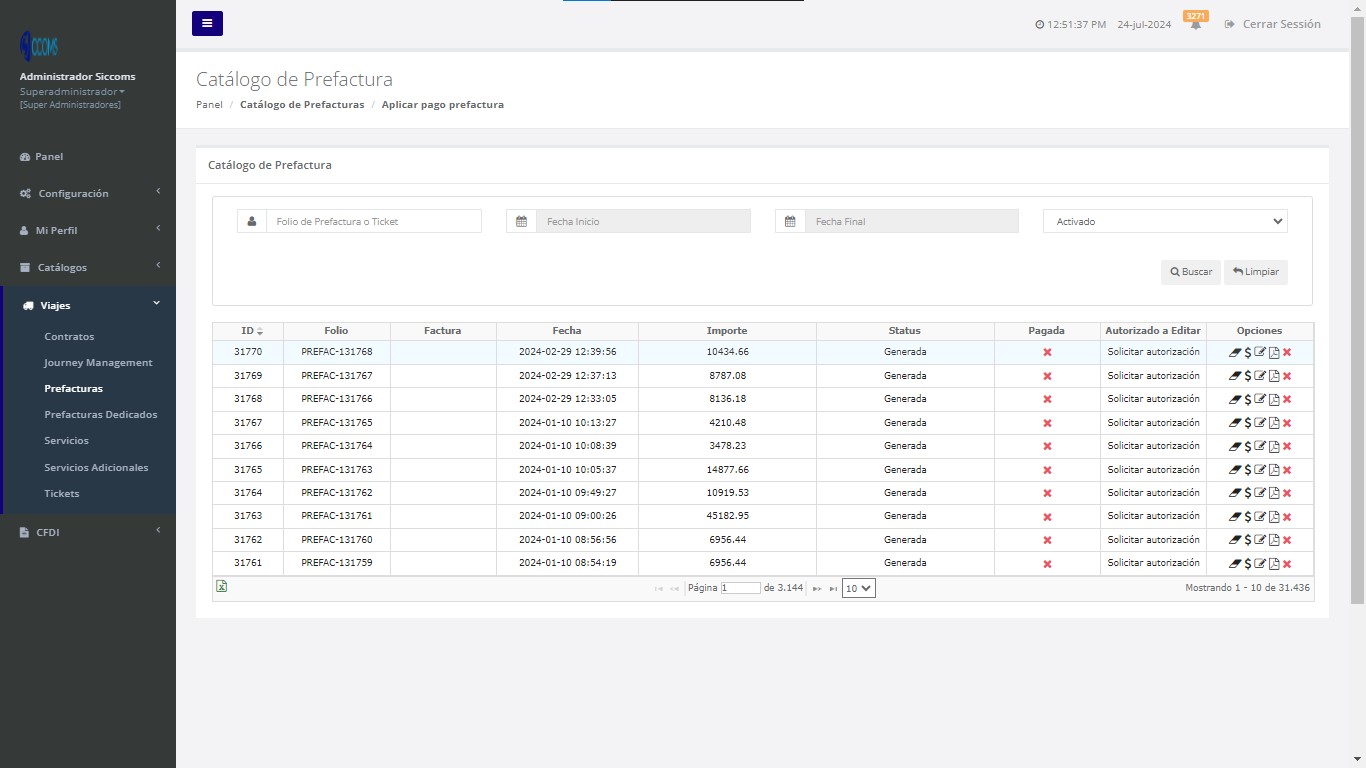 Administra de manera efectiva con opciones de edición, autorización, pago y generación de reportes en PDF y Excel. Mantén un registro detallado y preciso de los importes y estatus, asegurando un manejo eficiente de permisos y pagos.